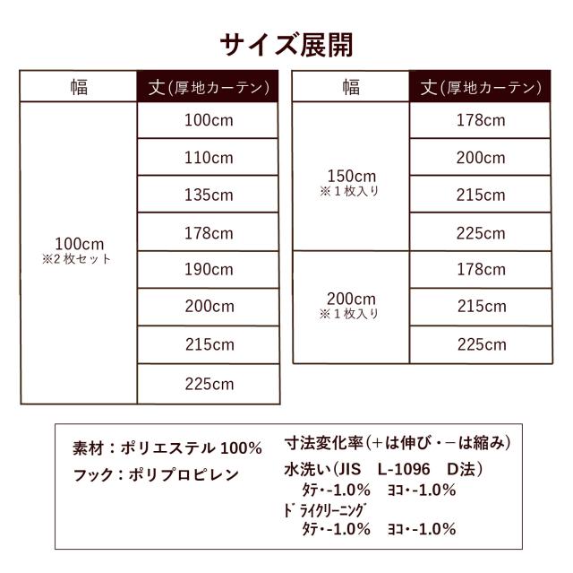 ・厚地カーテン2枚(150cmと200cm幅商品は1枚入り)