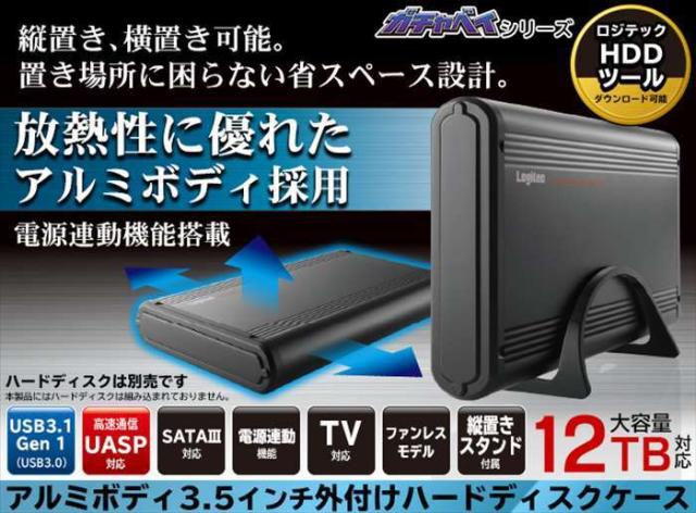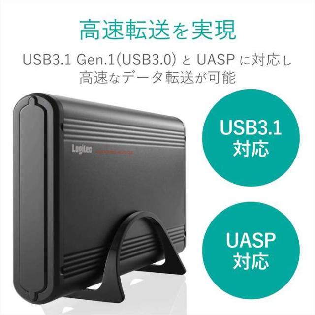 ■3.5インチのHDDを簡単に取り付け、パソコンでデータのやりとりを行うことができます。 ■USB3.0対応で快適なデータのやりとりができます。またUASPにも対応しており、対応OSにおいてさらに高速な通信が行えます。 ■HDDは最大12TBまでの大容量に対応 ■アルミボディを採用し、堅牢性と放熱性を確保 ■「Logitecディスクフォーマッタ」、「Logitecディスクイレイサ」、「Logitecミラーリングツール」の3種類のロジテックオリジナルツールを付属。ハードディスクをより便利にご使用いただけます。