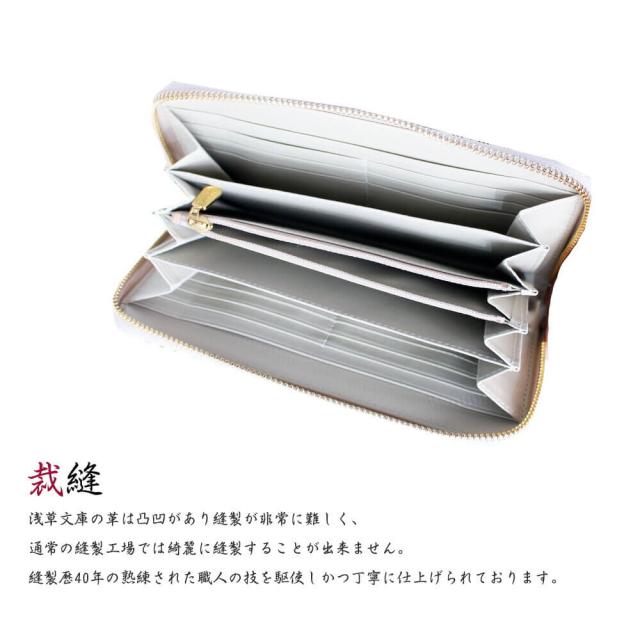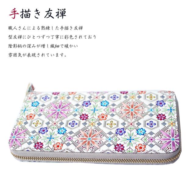 送料無料 夏新作 浅草文庫 長財布 ラウンド 花菱 ピンク 手書き友禅 天然皮革 おしゃれ 可愛い 大人 上品