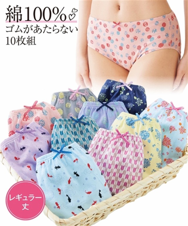 綿100%ゴムが肌側にあたらないレギュラーショーツ10枚組