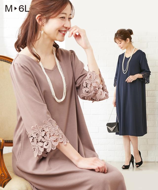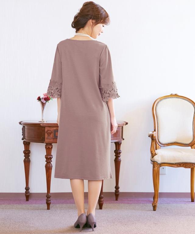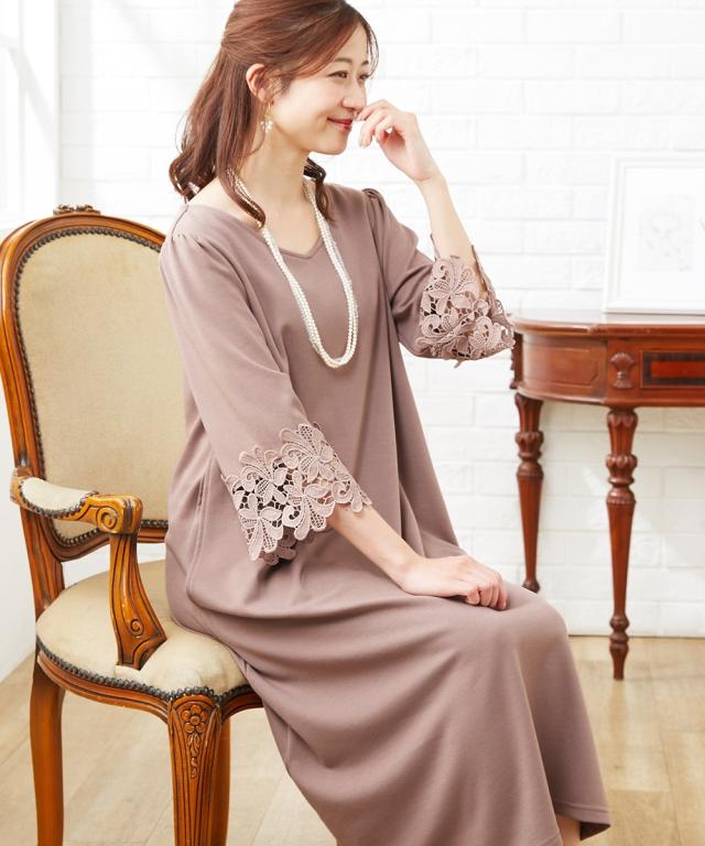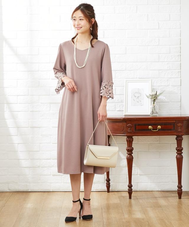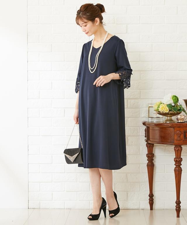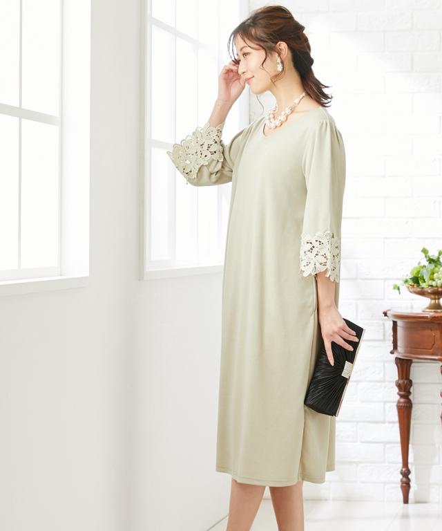 通勤やフォーマルにも使える可憐な袖レース使いのワンピース?