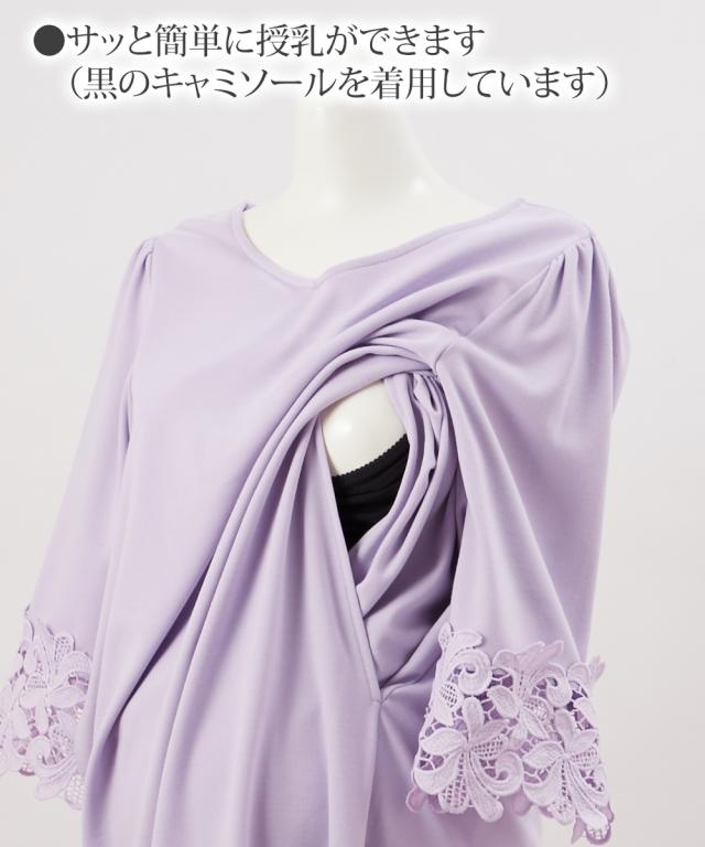 【産前・産後 授乳服】授乳服には見えない袖口レース使いマタニティワンピース