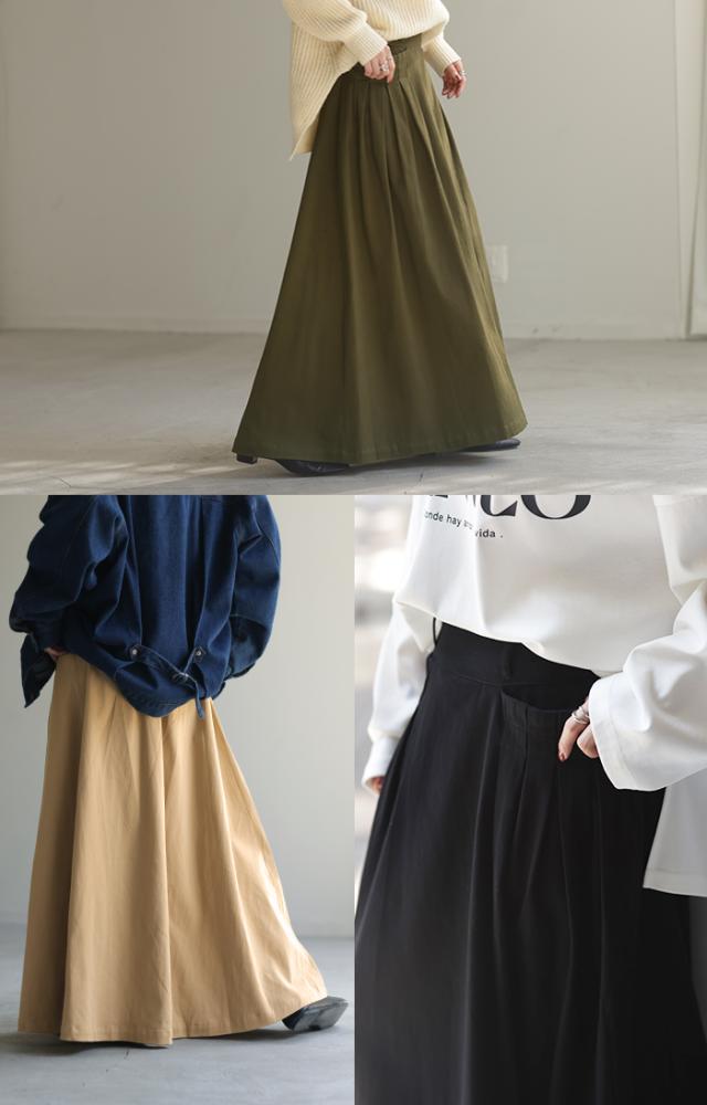 【冬SALE】 スカート レディース ロングスカート Aラインスカート タックスカート ウエストゴム ゴム 大きいサイズ 体型カバー フレアスカート ワークスカート ロング マキシスカート ベイカースカート カーゴ チノ 冬 秋 秋新作