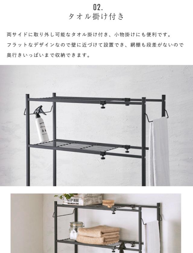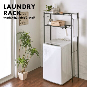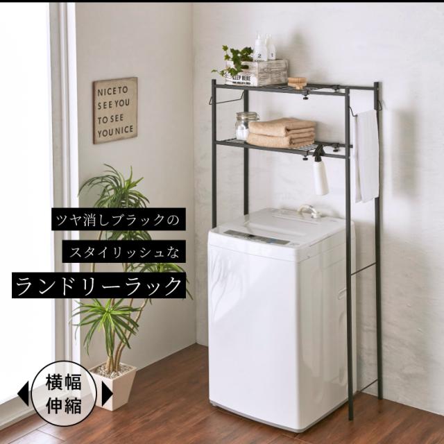 角パイプ洗濯機棚 黒 洗濯機棚 ランドリー収納 ランドリーラック バス 伸縮 2段ラック 送料無料 LF611B10b000