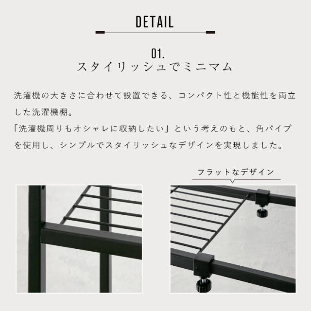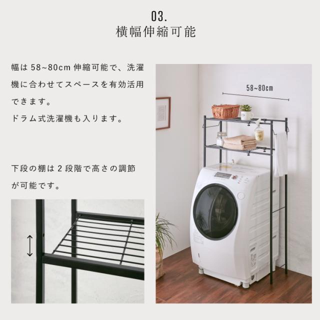 いろいろな洗濯機に対応する便利な幅伸縮式で、洗濯機に合わせてスペースを有効利用できます。