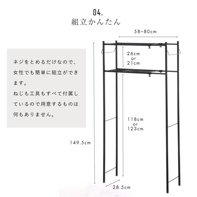 製品外寸法:幅58〜80×奥行28.5×高さ149.5cm