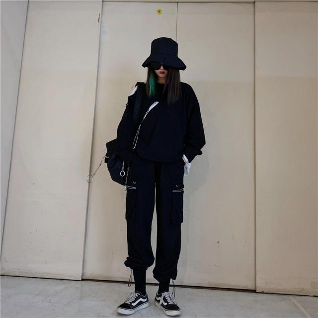 LAZA レディース ストリート ダンス衣装 ヒップホップ カーゴパンツ ズボン パンツ ワイドパンツ 無地 ブラック