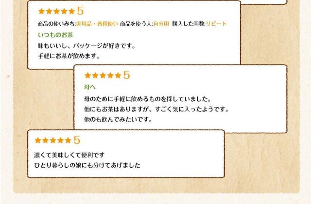 - 何度か、頼んでます。 特に、父が、気に入ってて、今回は、たくさん作るので、ポット用の大きいサイズを頼みました。 こちらのお茶は、色は、濃いけど、とても、美味しいです(o^^o)