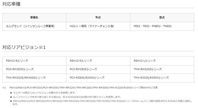 E52系エルグランドに、10..1/10.2型リアビジョンを取り付ける為のキット。