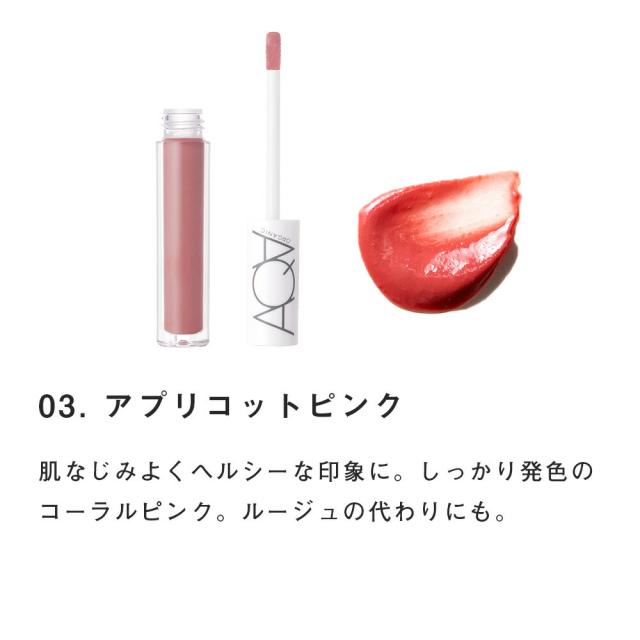 いちご&オレンジオイル配合で軽いのにしっかり潤う保湿力。 フレッシュなイチゴ*1やオレンジ*1、アプリコット*1のフルーツエキスでみずみずしいぷるツヤリップに。オーガニック成分のヨーロッパキイチゴ種子油*2を配合し、顔のパーツの中でも最も繊細な唇を潤しながら彩ります。ヒマシ油*2などの植物オイルブレンドで唇にピタッと密着。 *1イチゴ種子油、オレンジ果実エキス、アンズ果実エキス(すべて保湿成分) *2保湿成分 | COLOR