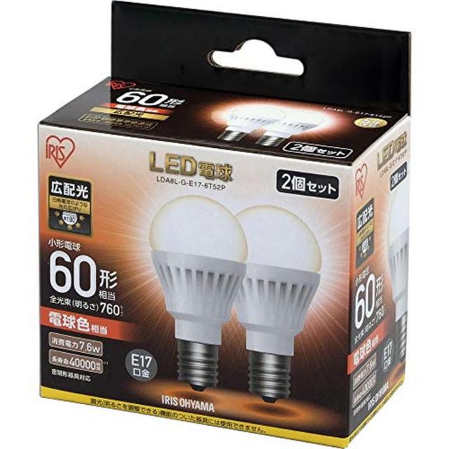 アイリスオーヤマ LDA8L-G-E17-6T52P ECOHiLUX [LED電球 (E17口金・60W相当・760lm・電球色) 2個]