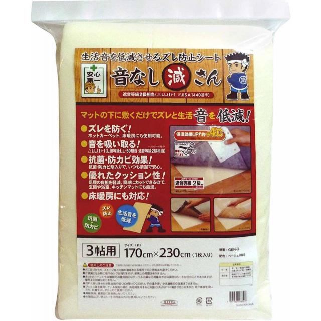 明和グラビア 防音ズレ防止 音なし減さん(2mm) GEN-3 ベージュ 170cm×230cm 抗菌・防カビ 床暖房対応