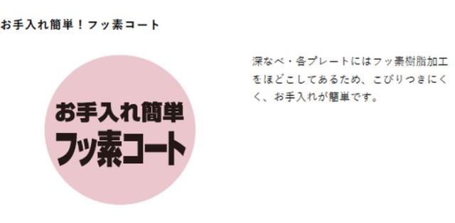 深なべにはフッ素樹脂加工をほどこしてあるため、こびりつきにくく、お手入れが簡単です。