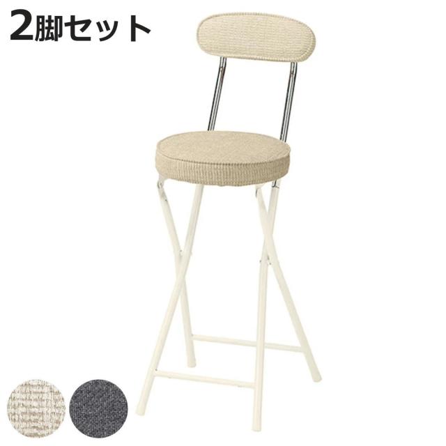 カウンターチェア 2脚セット 高さ約60cm 背もたれ付き フォールディングスツール 折りたたみ椅子 ( ファブリック 布 丸 ラウンド 椅子 セット 折り畳み ハイチェア 来客用 キッチンチェア 60センチ おしゃれ )