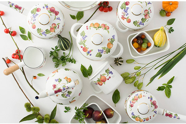 クラシカルで瑞々しい絵柄がキッチンを優雅に彩るフルータスコレクション。インテリアにもなる気品溢れるデザインで、保存容器からケトル、鍋までついつい揃えたくなる豊富なシリーズ展開です。