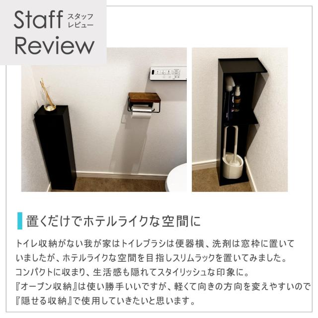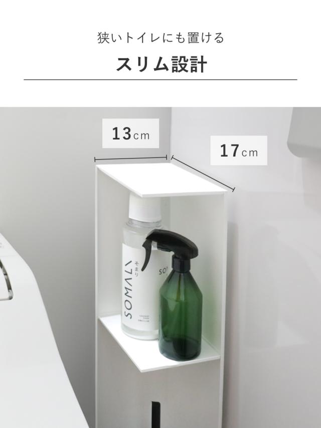 置き場所に困るお掃除グッズやインテリア小物をディスプレイしたりとトイレ以外でも便利に使えます。スリムでシンプルなフォルムなので、お部屋のどこに置いても馴染みます。