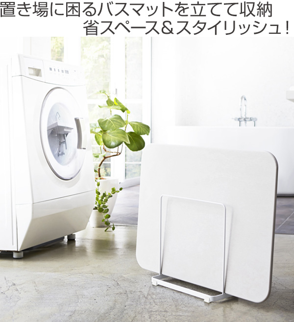 スリムで場所を取らず、すっきりとキレイに収納できます。また、クッション付きの専用スタンドに立てることで、壁面やバスマット自体に傷が付く心配がなく安心です。