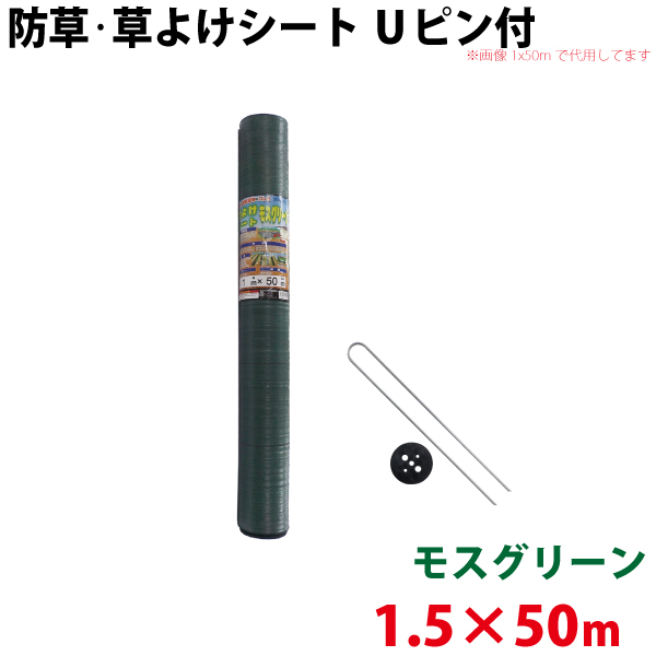 【Uピン黒丸セット】 シンセイ モスグリーン 防草・草よけシート 1.5m×50m 【北海道・九州別途送料/代引不可/沖縄県配達不可】