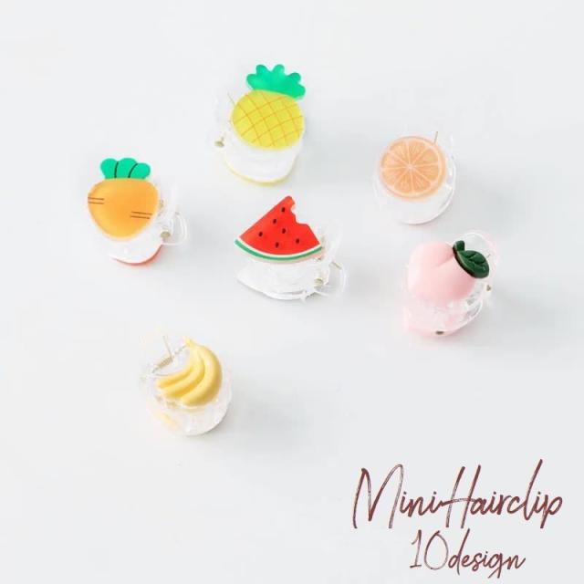 バナナやトマトなどがついて可愛い、小さなサイズのキッズ用ヘアクリップです。