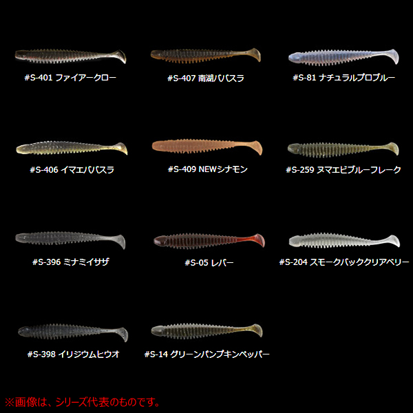 ●ジグヘッドやダウンショット、ライトテキサス、スプリットなど、ワーム単体での使用では、絶妙な抵抗のおかげで、軽いシンカーのリグでも、フォールが遅すぎて、なかなか沈まない等のストレスをフリー。誰が使っても非常に使いやすいワームです。