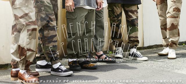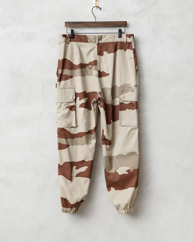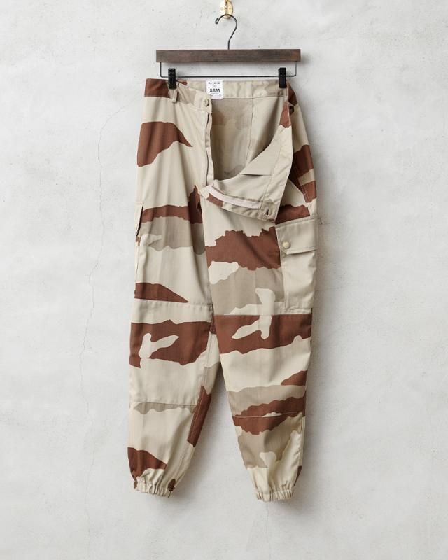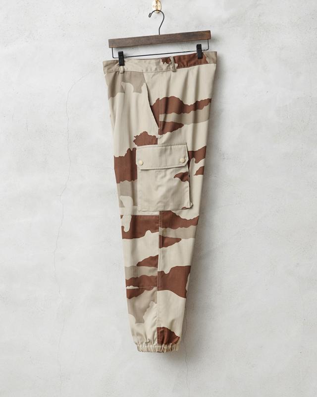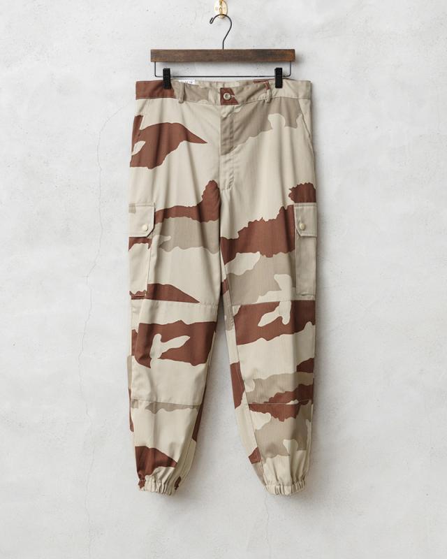 フランス軍を代表するカーゴパンツです。フランス軍で採用されている標準的な迷彩「CCE(CAMOUFLAGE CENTRAL EUROPE)」迷彩を、砂漠地帯向けにアレンジしたデザートCCEカモを採用しています。