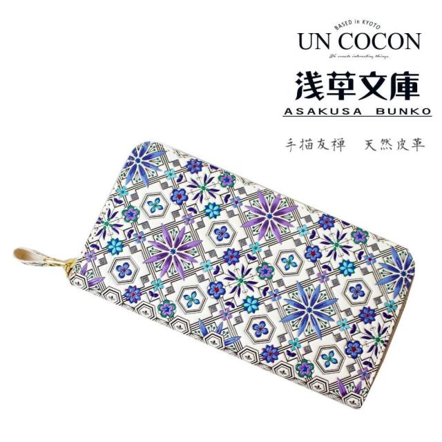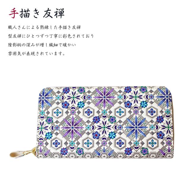 送料無料 夏新作 浅草文庫 長財布 ラウンド 花菱 ブルー 手書き友禅 天然皮革 おしゃれ 可愛い 大人 上品