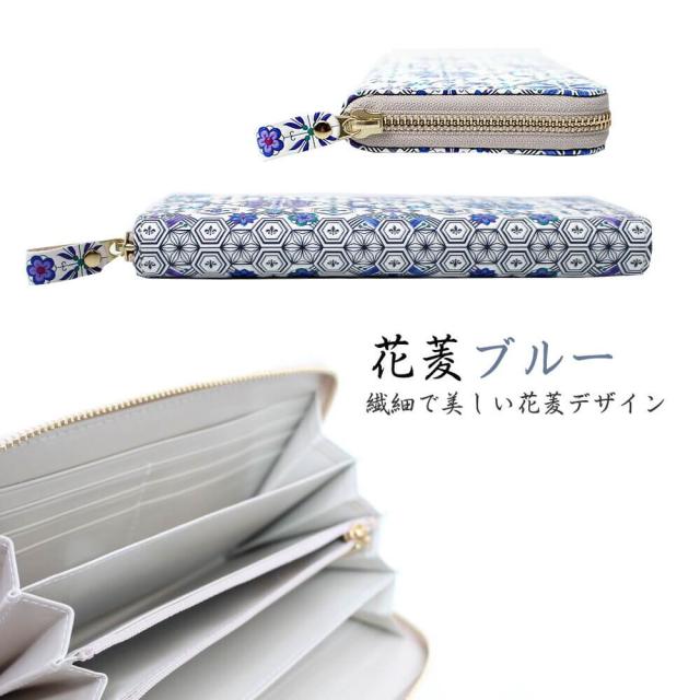 浅草文庫 長財布 ラウンド 花菱 ブルー 手書き友禅財