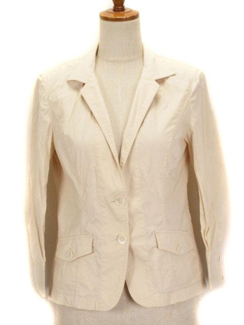 【中古】ポールスチュアート PAUL STUART シャツジャケット 七分袖 ストレッチ コットン 6 ベージュ レディース