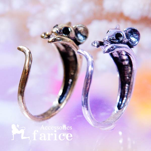 とっても可愛いネズミ しがみ付きデザイン レディース トゥーリング ピンキーリング 【ゴールド/シルバー】