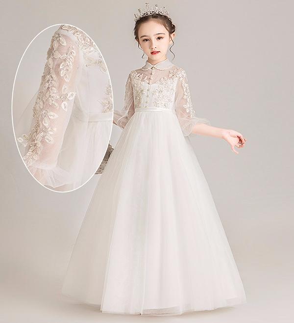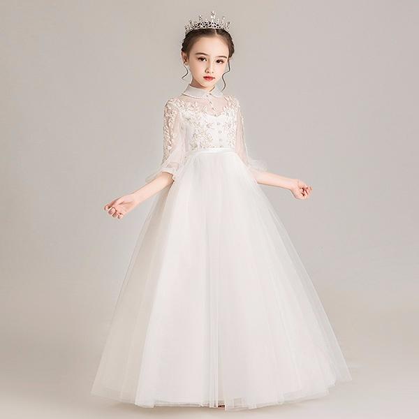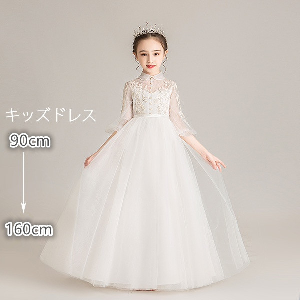 【送料無料】ピアノ発表会 ドレス ロング丈 ファスナー 子供ドレス ワンピース お姫様 着やせ 上品 エレガント 女の子 結婚式 子供 フォーマル キッズドレス