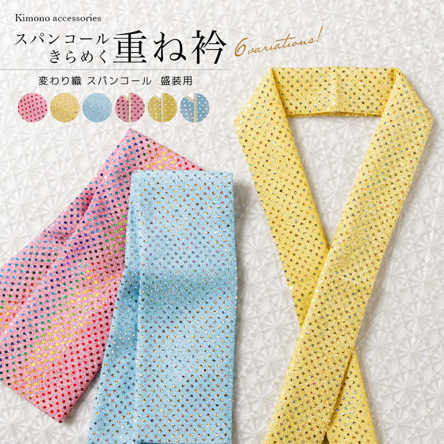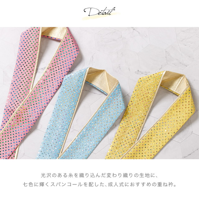 重ね襟 振袖 重ね衿 成人式 留めピン 結婚式 おしゃれ スパンコール ピンク 黄色 青 金 伊達衿 レディース 着物 和装小物 メール便 送料無料