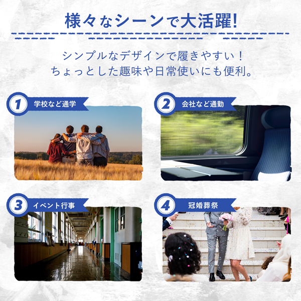 アッパー素材にはリアルレザーに近い質感の人工皮革を採用、撥水性があり、雨に強く汚れがついてもぬらした布等で一拭き、靴クリームも必要ないのでお手入れも簡単です。