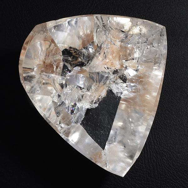 内部の亀裂はあまり目立たない透明度の高い天然水晶で、内包された結晶をはっきりとご覧頂ける一品。