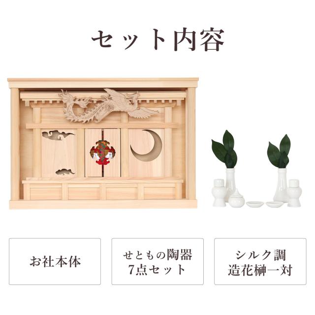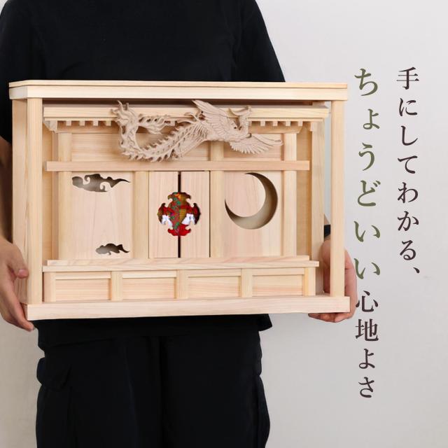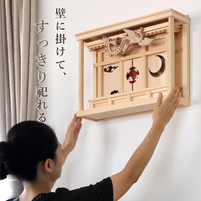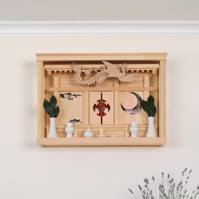 モダン 神棚セット 花鳥風月 〜 鳳凰の聖域 〜 神具付き 壁掛け 三社 箱宮 20号 薄型 サイズ 日本製