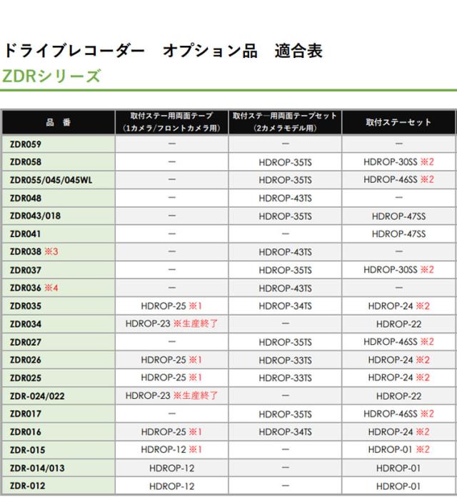 2カメラ ミラー型/ZDR048 | 2カメラ コンパクトタイプ/ZDR018 | 1カメラ 超広角タイプ/HDR204G |