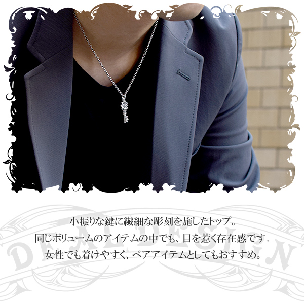 小振りな鍵に繊細な彫刻を施したトップ。