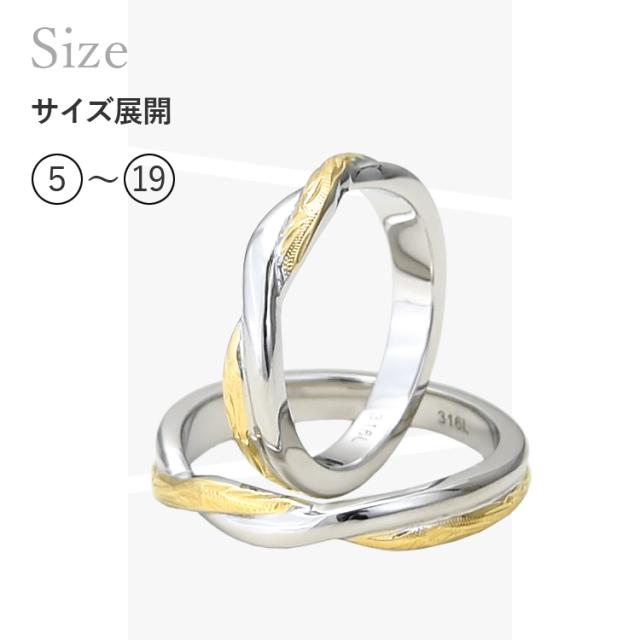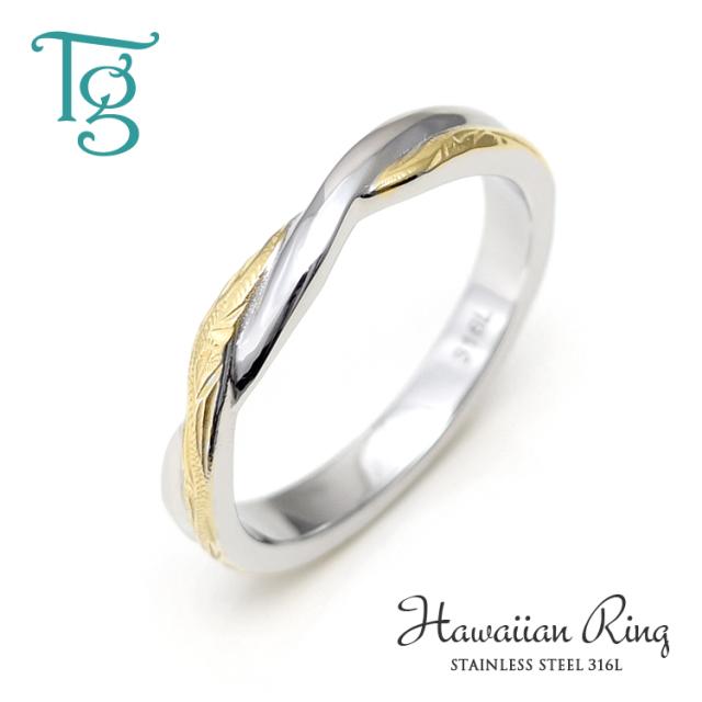ハワイアンジュエリー ペアリング 2本セット ステンレス 結婚指輪 刻印 シンプル つけっぱなし スクロール おしゃれ ハワイアンリング イエローゴールドカラー 指輪 マリッジリング サージカルステンレス 316L ノンアレルギー 金属アレルギー対応 grss656pair