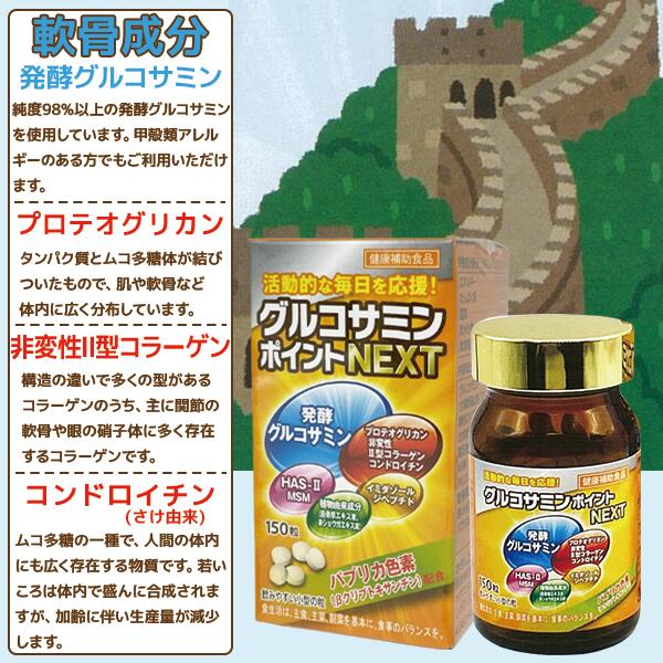 広貫堂 グルコサミンポイントNEXT 150粒 | コンドロイチン サプリ サプリメント グルコサミン コラーゲン おすすめ 栄養補助食品 ヒアルロン酸 ll型コラーゲン ペプチド HAS-ll MSM 筋骨草 敬老の日 敬老 ギフト 健康食品 食事で不足
