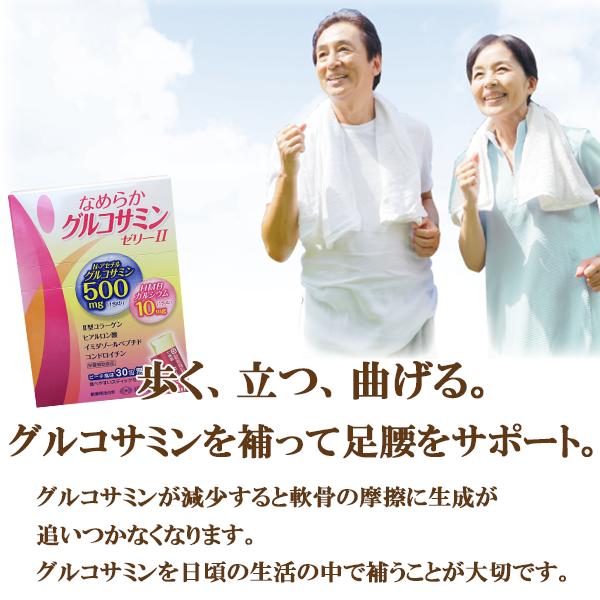 なめらかグルコサミンゼリーll 30包 | スティックゼリー 筋肉 健康 関節 ゼリー グルコサミン コンドロイチン カルシウム ヒアルロン酸 コラーゲン 腰 足 イミダペプチド イミダゾールジペプチド 敬老の日 健康食品 敬老の日ギフト 健康食品 サプリ サプリメント 食事で不足