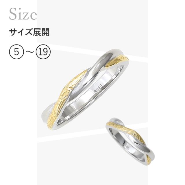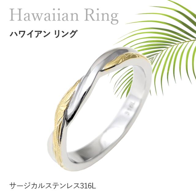 ハワイアンジュエリー リング レディース メンズ ステンレス 刻印 つけっぱなし スクロール シンプル イエローゴールドカラー おしゃれ ハワイアンリング 指輪 サージカルステンレス 316L ノンアレルギー 金属アレルギー対応 (grss656)