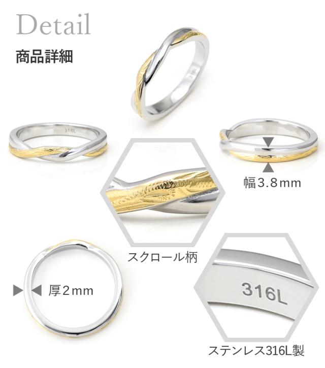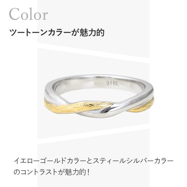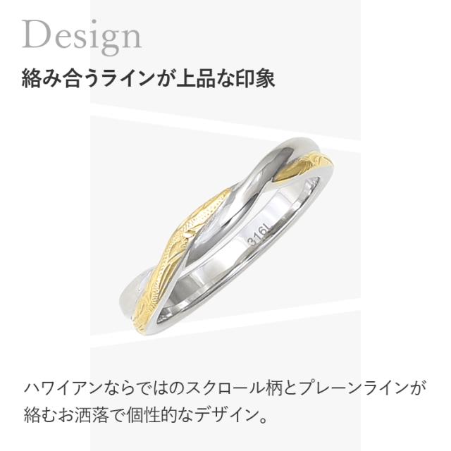 ハワイアンジュエリー リング レディース メンズ ステンレス 刻印 つけっぱなし スクロール シンプル イエローゴールドカラー おしゃれ ハワイアンリング 指輪 サージカルステンレス 316L ノンアレルギー 金属アレルギー対応 grss656
