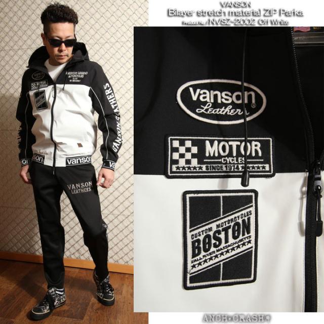 当店別注!VANSON バンソン 二層ストレッチ ZIPパーカー(NVSZ-2002)刺繍