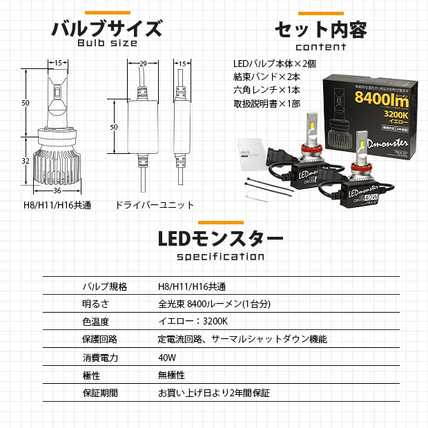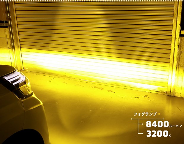 ピカキュウ,LED MONSTER L8400 FOG LAMP KIT,LEDモンスターL8400フォグランプキット,3200K,爆光,良配光,カットライン,超爆光,明るい,汎用,キット,国産車,日本製の車,黄色,ニッサン,NISSAN,激光,車検対応
