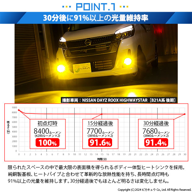 ※ルーメン値は、バルブ2個(車両一台分)の値を示しています。