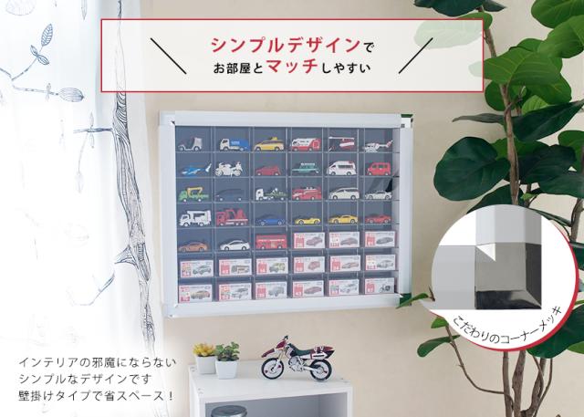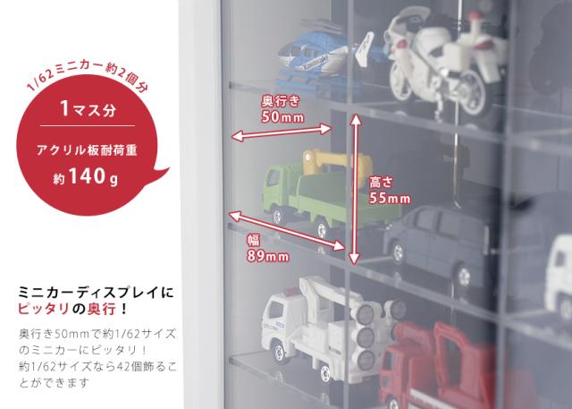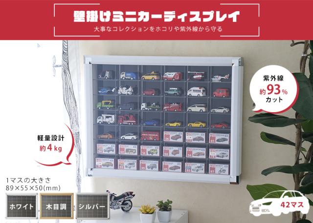 ミニカーディスプレイ 42マス 壁掛けタイプ 送料無料 ミニカー コレクションケース 収納ケース 収納棚 トミカ 壁掛け UVカット 紫外線カット フィギュアケース アクリル 1/62 日本製