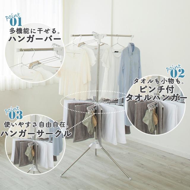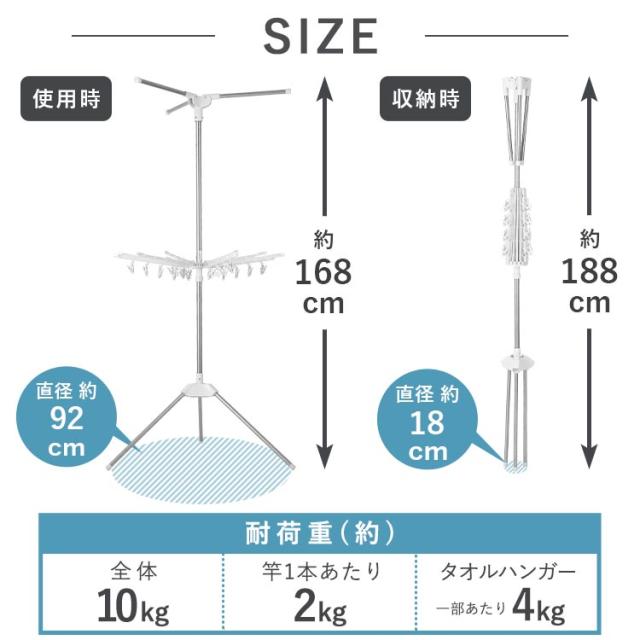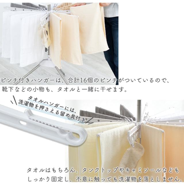 室内物干し 洗濯物干し 物干し パラソル 2段 ステンレス タワー型 折りたたみ スリム収納 ハンガーバー ロング丈 ピンチ付き タオルハンガー 組立簡単 工具不要 部屋干し 梅雨 除湿機 サーキュレーター 花粉 アイリスオーヤマ HP-170 *