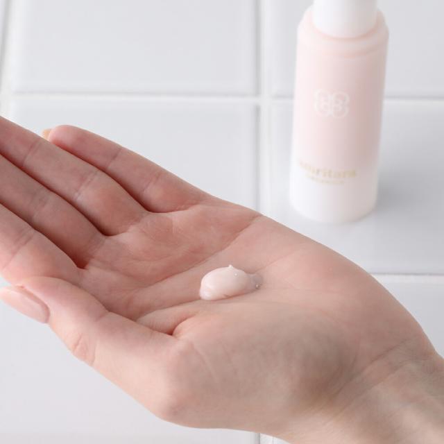 化粧水、セラムのあと手のひらに適量プッシュし、お顔と首に伸ばします。化粧下地にもなり、昼も夜もお使い頂けます。 | 容器の構造について 合成防腐剤を使用しない代わりに、スキンケア商品は出来るだけ空気にふれないように、エアレス構造やバックレス構造の容器を採用しています。内容物が外部の空気に触れない構造をしているので、中身の酸化や汚染を防止し、フレッシュさを保ちます。
