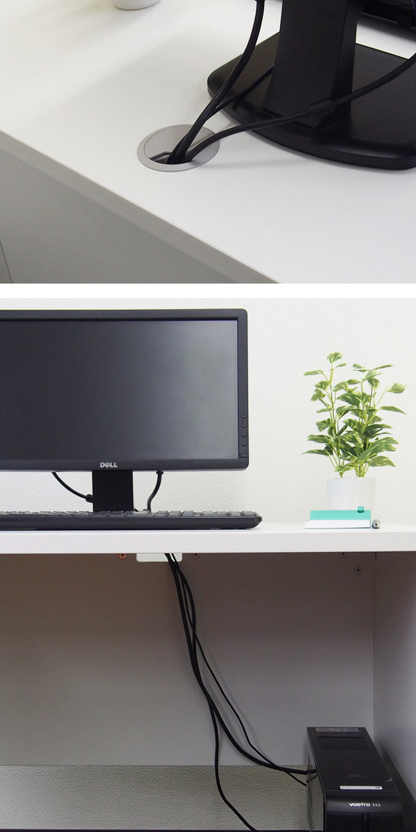 ●コードが配線穴に通せるので、デスク周りの見た目もスッキリします。