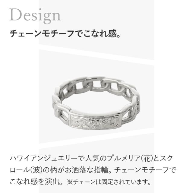 ハワイアンジュエリー リング レディース ステンレス つけっぱなし プルメリア スクロール チェーンリング スティールシルバーカラー おしゃれ ハワイアン 指輪 サージカルステンレス 316L ノンアレルギー 金属アレルギー対応 (grss658st)