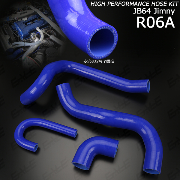 JB64W ジムニー ターボホース シリコン インテーク ホース パイピング 4点セット 3層構造 ブルー S-158